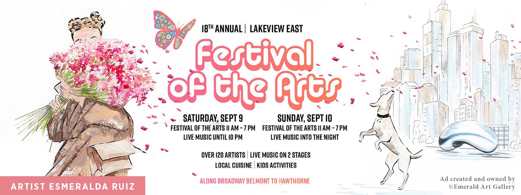Experience a weekend filled with art, music, food, and family activities at the 18th Annual Lakeview East Festival of the Arts! Join us on Saturday from 11AM to 7PM with music continuing until 10PM, and Sunday from 11AM to 7PM.